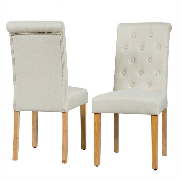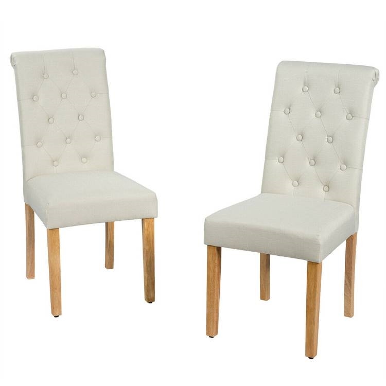 Home > Set of 2 Beige Linen Button Tufted Dining Chair with Wood Legs