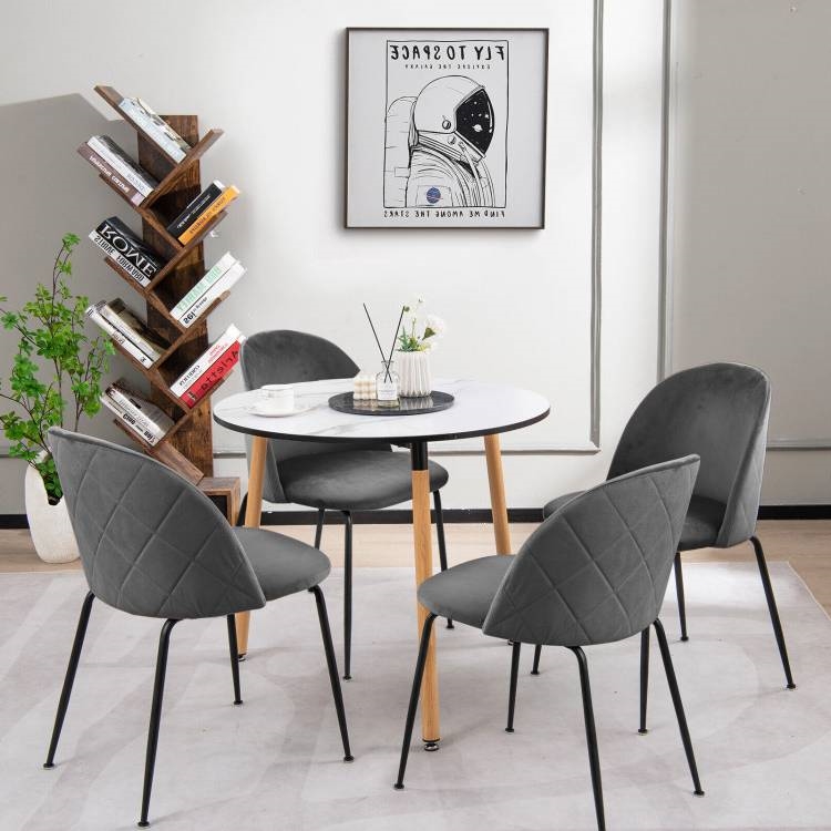 Set of 2 Modern Grey Velvet Upholstered Dining Chair with Metal Legs