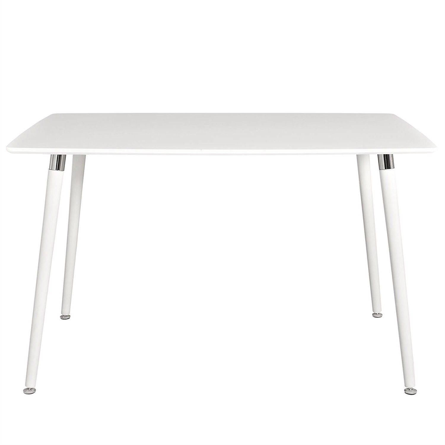 Merge the worlds of intellect and excitement and find an ideal treasure trove of progress and productivity. This Modern Mid-Century Style Dining Table in White with Wood Legs light and airy look blends with a strong solid beech wood leg foundation for upward movement. Firm resolutions and new pathways spread beyond Lode's four cornered fiberboard surface to bring new energy to every corner of your abode. Set Includes: One - Lode Dining Table Product Dimensions: Overall Product Dimensions: 47"L x 29.5"W x 29"H Table Top Thickness: .5"H Leg Size: 1.5"W x 28.5"H.