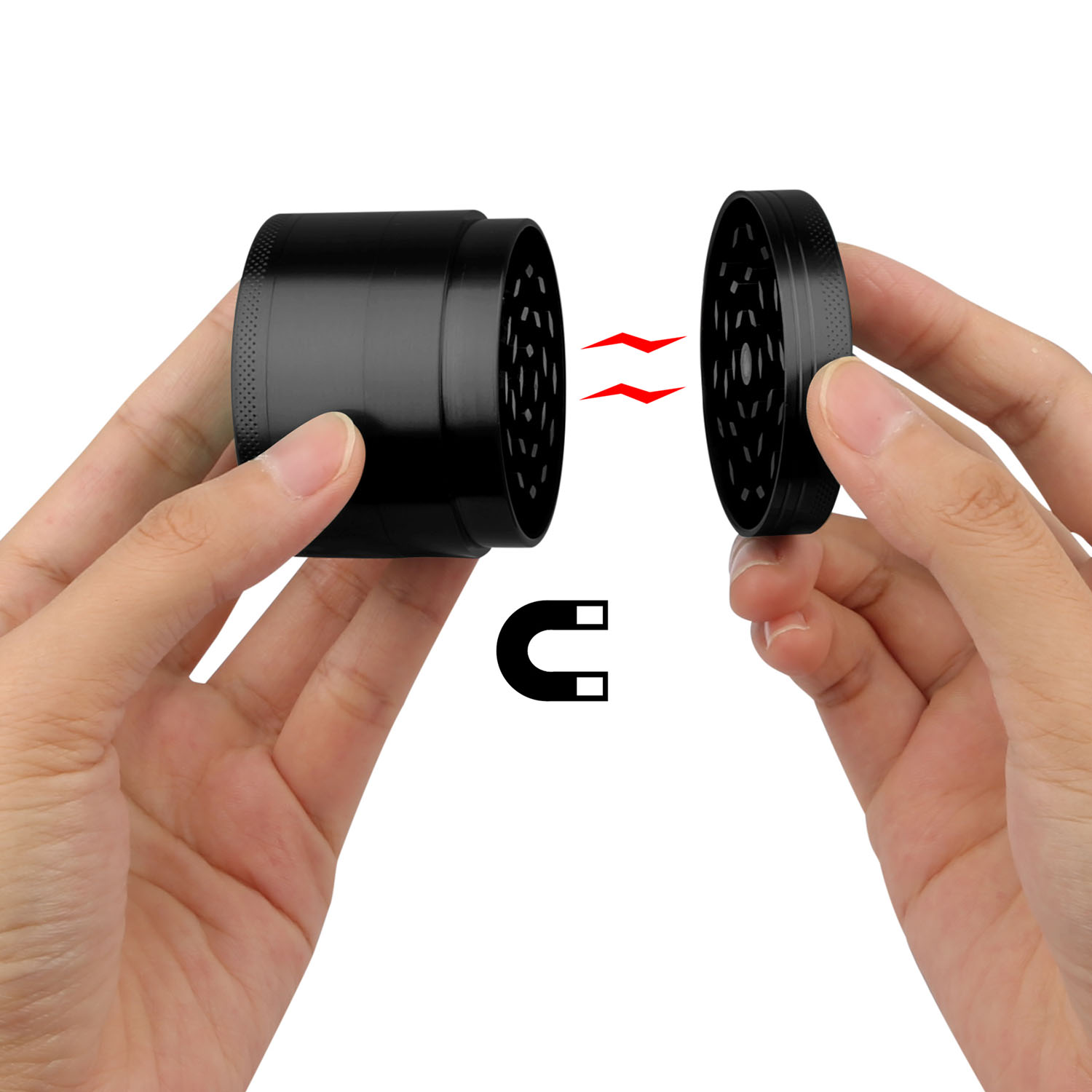 Magnetic Herb Spice Tobacco Grinder 2-inch 4-Piece Zinc Alloy Crusher Kitchen Mill with Pollen Scraper